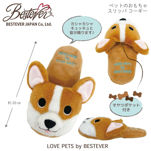 スリッパ部分とお顔部分は違う素材なので、ワンちゃんも飼い主さんも楽しいおもちゃです。