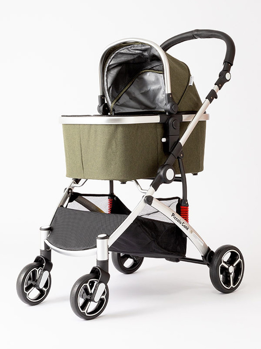 小型犬におススメ、女性にも押しやすいペットカートです。 従来のCARINOをグレードアップしたカートです。 キャリーコットセパレートに加えて、段差などの衝撃を吸収するサスペンションを装備。 ハンドルは5段階に調節が可能で、飼い主さんの身長やシーンに合わせて快適な走行をお楽しみいただけます。