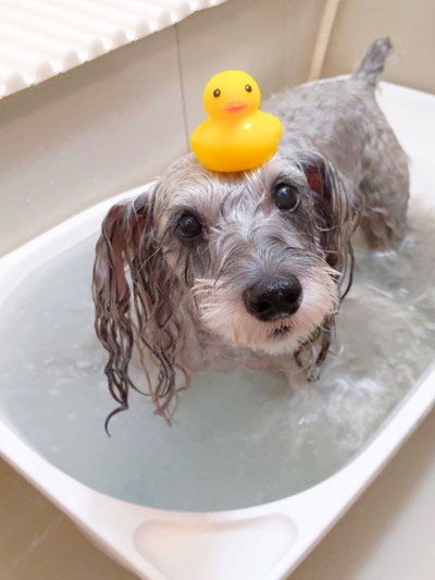 ・シャンプーの前にドッグバス等に適量のお湯をため小型犬・中型犬は1個、大型犬、人は2個を目安にご使用ください。