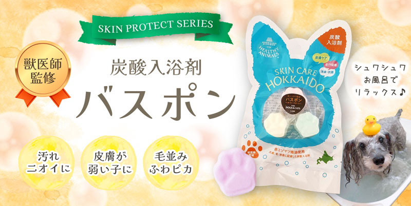 【皮膚・毛並み・ 血行・炭酸入浴剤】バスポン3個入(犬・猫・人・赤ちゃん)赤エゾマツ配合
