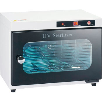 水洗い出来ないハサミ、クシ、ブラシ等を消毒器の中にれて約1時間中に入れて置くと8ワットの殺菌灯で、殺菌消毒してくれます。