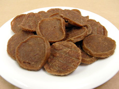 ○乾燥おやつの出来上がりは製造する日の気温や湿度により乾燥具合が異なる場合がございます。商品の品質を安定して供給できるように努力しておりますが、乾燥の具合、味、形状に多少の違いが発生します。これは天然素材を使用し手作りにて製造している宿命ですが、製品の品質・安全には全く問題ありません。