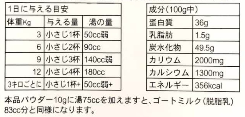 ヤギ脱脂粉乳
