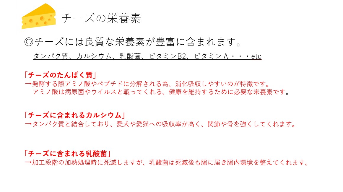 【原材料】ナチュラルチーズ(オーストラリア・ニュージーランド)、乳化剤(日本)、水(日本)【成分】 粗たんぱく質:38.0%以上 粗脂肪:50.0%以上 粗繊維:0% 粗灰分:9.2%以下 水分;1.0%【代謝エネルギー】609kcal/100g【原産国】日本【使用上の注意】開封後は賞味期限に関わらずお早めにお与えください。直射日光や高温多湿を避けて保管してください。年齢、体重、健康状態等を考慮し、適量をお与えください。