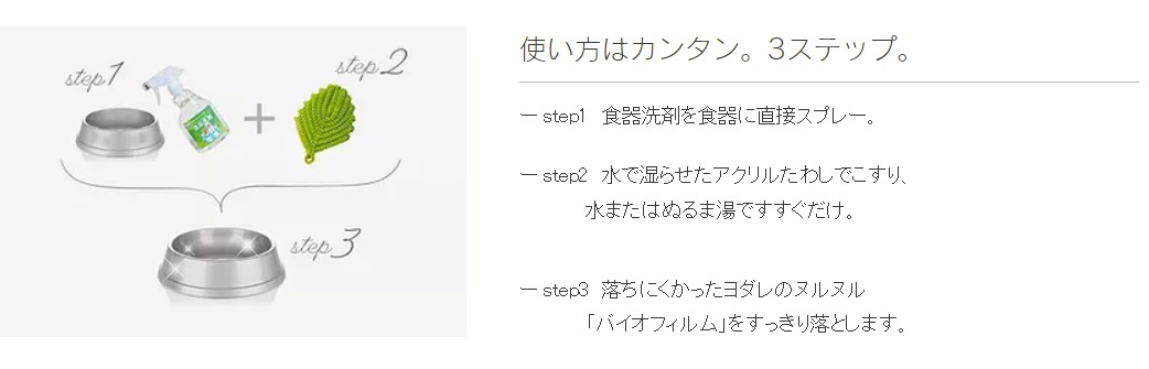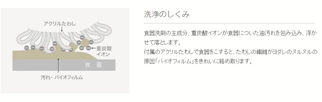 ・アクリルたわしで擦りながら水ですすぎ流してください。