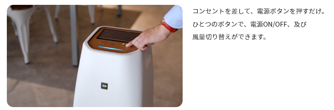 オゾン、イオン、次亜塩素酸などの放出はゼロ。 有害因子を本体内部の光除菌フィルター上で分解・除去してキレイな空気でお部屋を満たします。