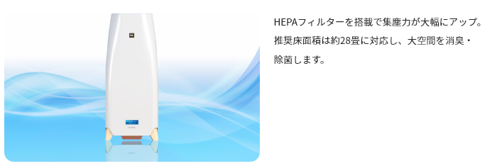 ブルーディオM型は、1台で約28畳分の部屋を消臭除菌いたします。
