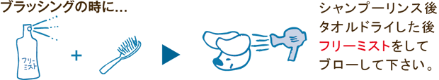 普段のブラッシング、シャンプーの後のドライング時、お散歩前やお散歩帰り、乾燥がひどい時にお使いください