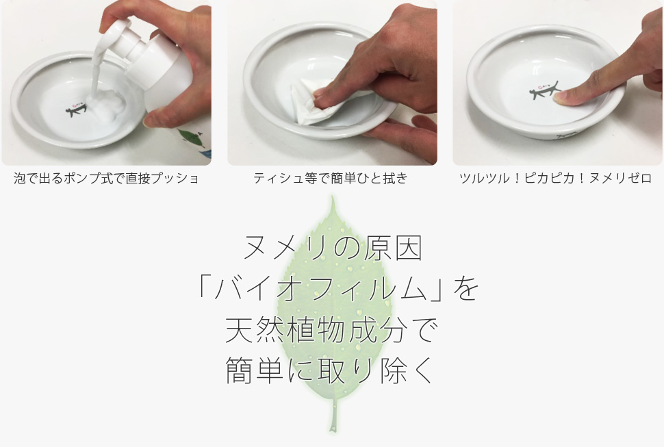 ◆天然植物由来成分で、ガンコなヌルヌルの原因であるバイオフィルムを取り除くスグレモノ。