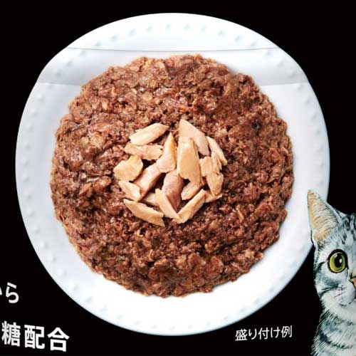 かつおの赤身肉を使用した総合栄養食。 DHA、EPA、鉄分、タウリン、ビタミンEを含むかつおの赤身肉に、かつおの白身肉をトッピングした総合栄養食。おいしさにこだわった旨味エキス配合。