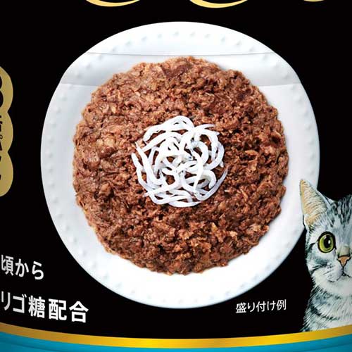かつおの赤身肉を使用した総合栄養食。DHA、EPA、鉄分、タウリン、ビタミンEを含むかつおの赤身肉に、人気の具材をトッピングした総合栄養食。おいしさにこだわった旨味エキス配合。