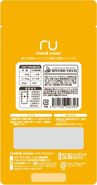 たんぱく質:4.0%以上、脂質:0.0%以上、粗繊維:0.5%以下、灰分:1.0%以下、水分:90.5%以下、エネルギー:1本あたり約6kcal