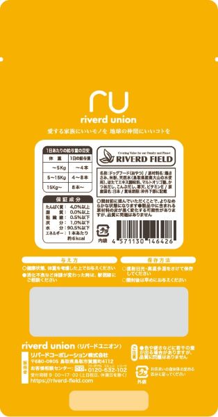 たんぱく質:4.0%以上、脂質:0.0%以上、粗繊維:0.5%以下、灰分:1.0%以下、水分:90.5%以下、エネルギー:1本あたり約6kcal