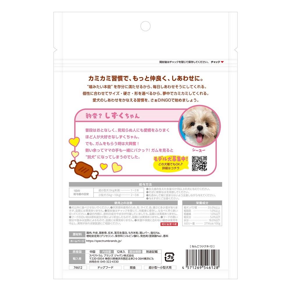 人間も食べたくなっちゃう(!?)ナンコツ・玄米が入ったつくね風ガム。高たんぱく、低脂肪な鳥胸肉を使用。食物繊維豊富な玄米とコラーゲン豊富な軟骨で健康をサポート。牛皮と米粉で出来た“マンチーガム”でほどよ~い噛み応え。
