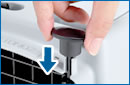 開閉は、ハンドルを引っ張り上げるだけ。締めると同時にドアはロック。カギの締め忘れといった心配は無用です。