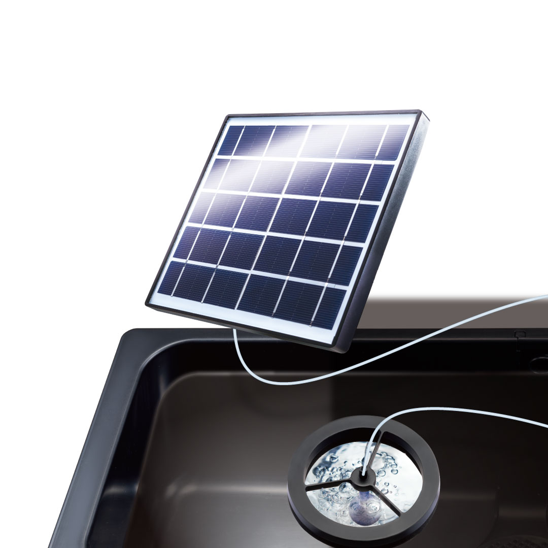 ソーラーパネルとエアーポンプを1つにまとめた一体型の設計。