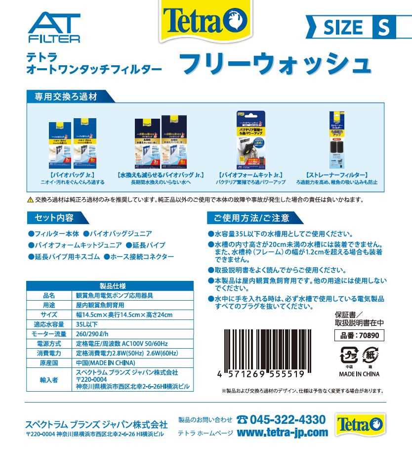 Tetra テトラ オートワンタッチフィルター フリーウォッシュ S