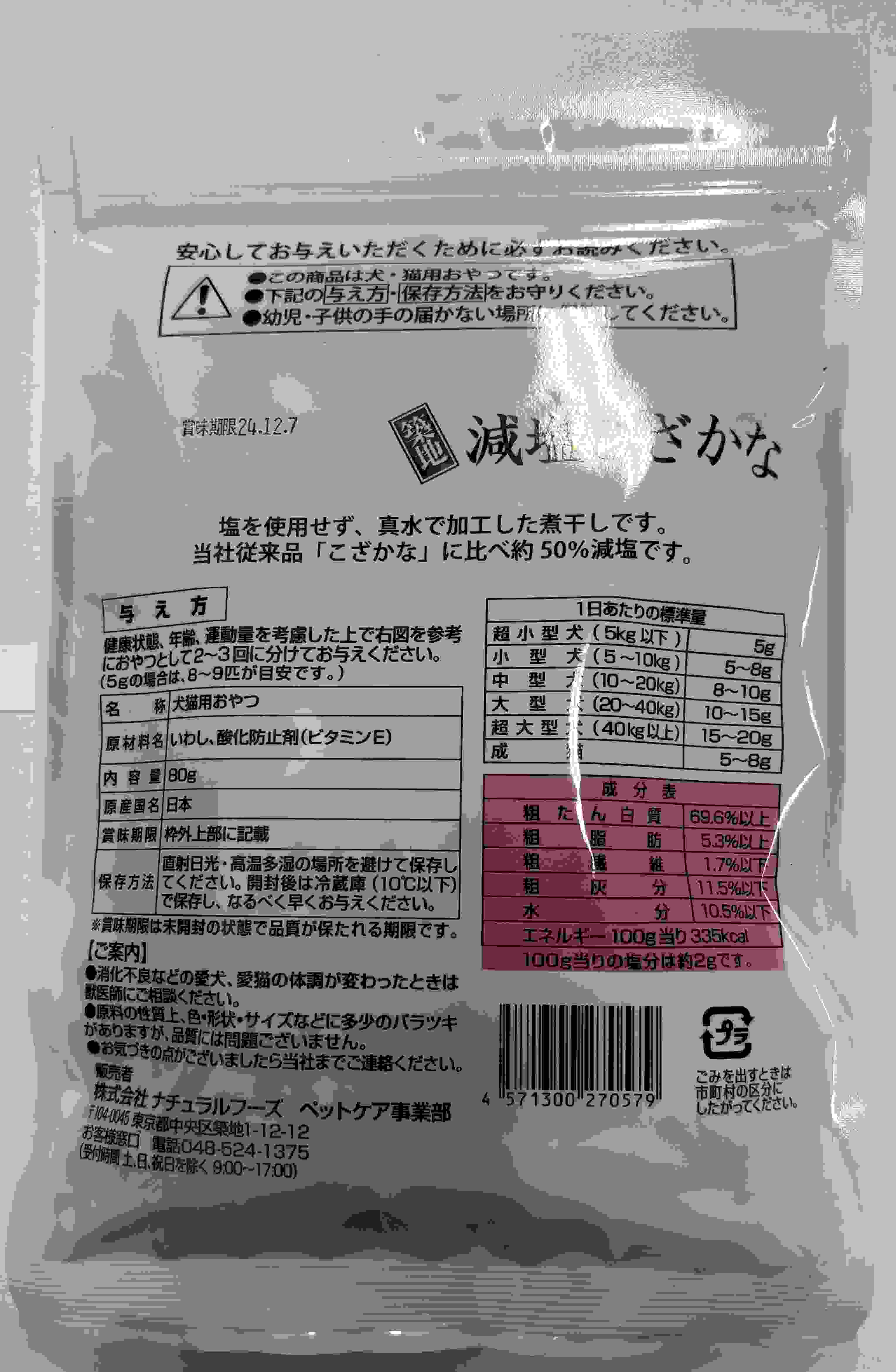 ナチュラルフーズ 築地減塩こざかな 80g