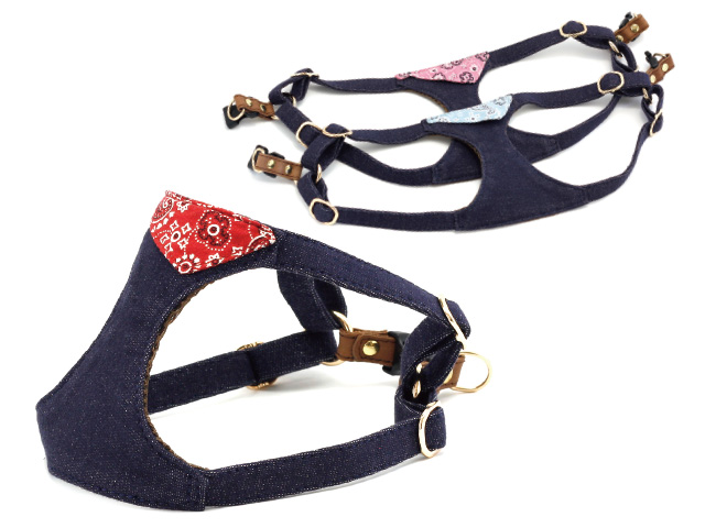 シンプルなデニム生地にバンダナプラスでアクセントに。