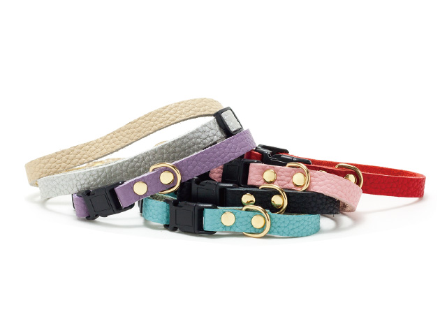 高級感のある仕上がり、牛革を使ったパピー用首輪<ワンタッチバックル>