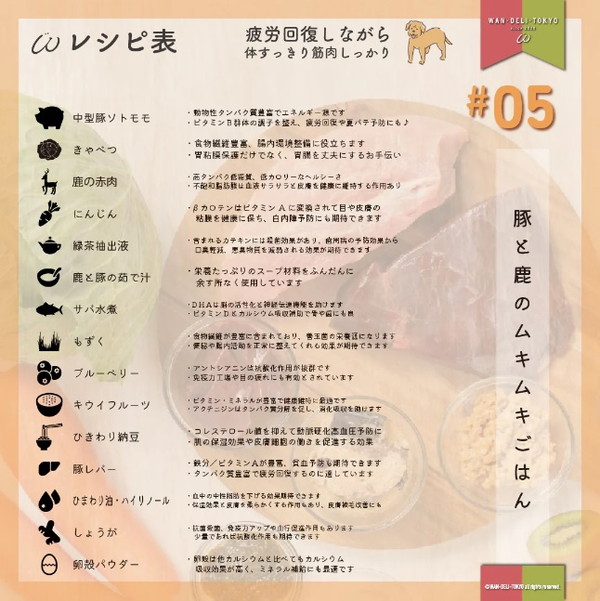 疲労回復しながら体すっきり、筋肉しっかり。 余計な脂肪は使用せず、お肉はヘルシーな鹿肉と豚そとももの赤身を使用。 筋肉の維持はもちろん疲労回復のお手伝いにも活躍してくれるお肉たちを、おなかにやさしいキャベツやもずく、納豆・キウイで包みこみました。