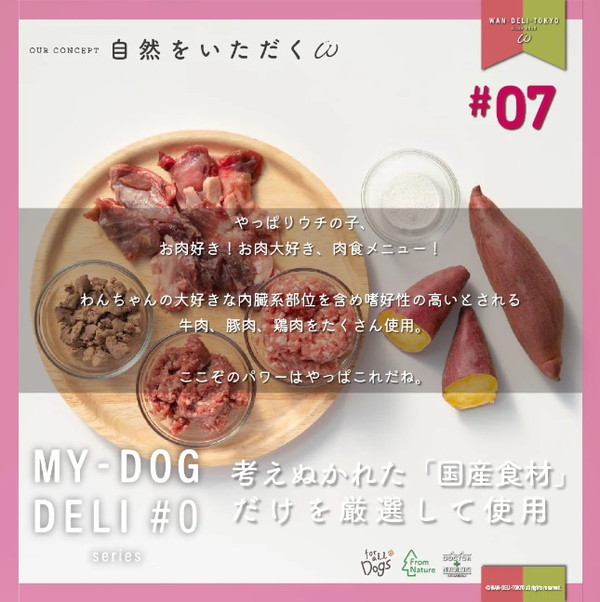 お肉大好き!肉食メニュー! 食べムラ&食の細い子の救世主。 臓器にやさしく嗜好性もGOOD! わんちゃんの大好きな内臓系部位を含め、嗜好の高い牛肉、豚肉、鶏肉をたくさん使用しました。