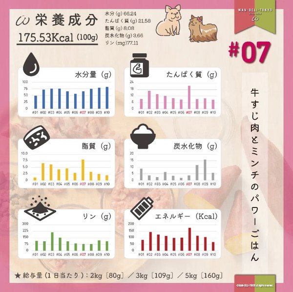 わんちゃんの大好きな内臓系部位を含め、嗜好の高い牛肉、豚肉、鶏肉をたくさん使用しました。