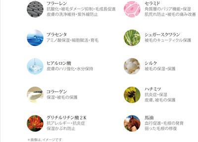 抗酸化に優れたフラーレン配合の高品質エイジングケアシリーズ。プラセンタ・馬油・セラミド・シルク・ハチミツなど贅沢な天然保湿成分がペットの皮膚と被毛に栄養を補給しながら優しくエイジングケアしてくれます。