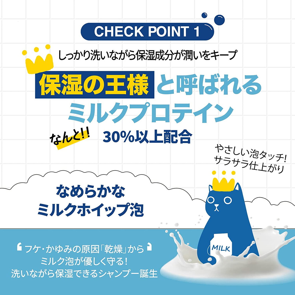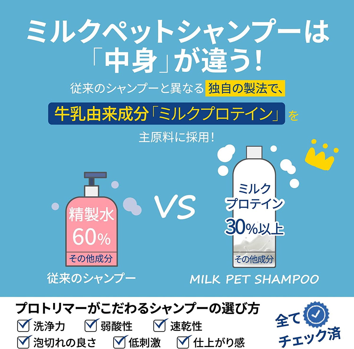 ■プロトリマーがこだわるシャンプーの選ぶ基準を考案して商品開発! ■乾燥によるフケと痒みをなめらかなミルクホイップ泡がやさしく包み込み洗い流す ■牛乳由来のミルクプロテインを主原料に採用!30%以上配合して洗いながら保湿できるシャンプー!