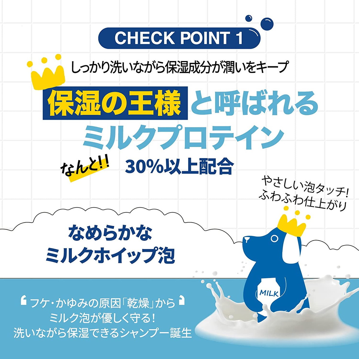 ■プロトリマーがこだわるシャンプーの選ぶ基準を考案して商品開発! ■乾燥によるフケと痒みをなめらかなミルクホイップ泡がやさしく包み込み洗い流す ■牛乳由来のミルクプロテインを主原料に採用!30%以上配合して洗いながら保湿できるシャンプー!