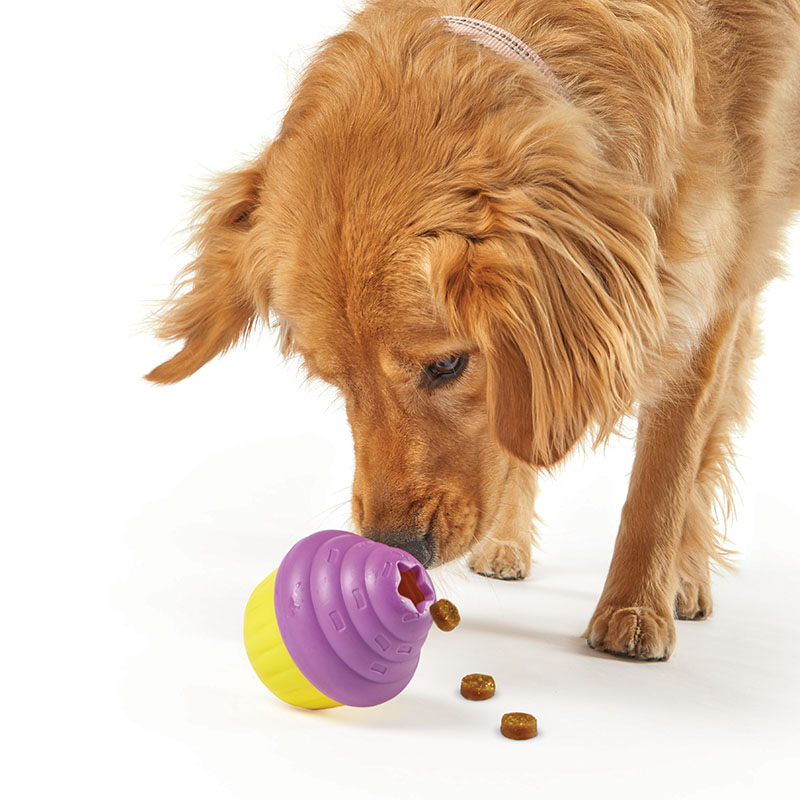 大型犬向けの転がして遊ぶカップケーキ型のトリーツ玩具!BPAフリーの素材でお手入れ簡単!