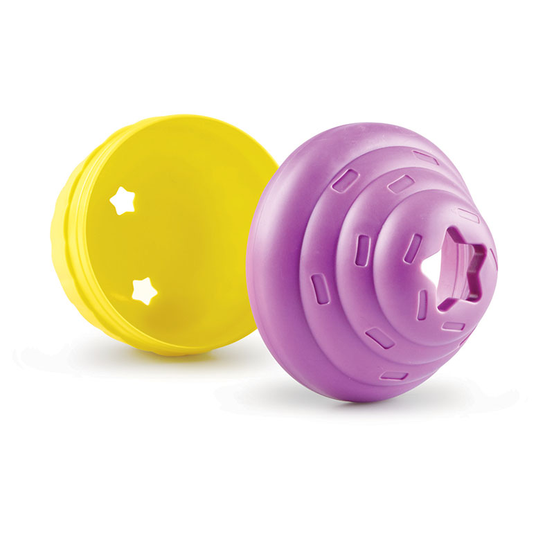 ふたを開けてトリーツを入れてください。不規則に転がるカップケーキ型のこのペットトイで、愛犬はおもちゃとして遊びながらおやつをゲットできます。