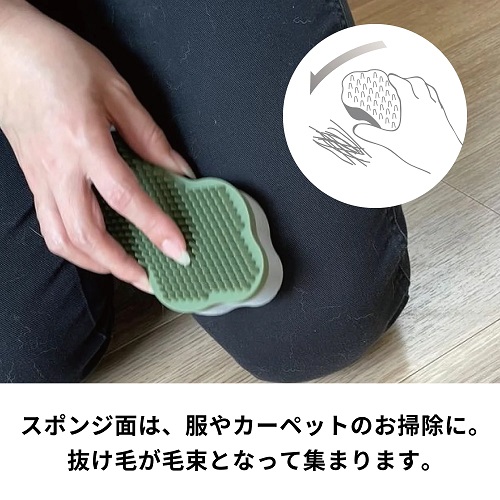スポンジ面はソファやカーペット、洋服などに付いた抜け毛をお掃除する機能があります。