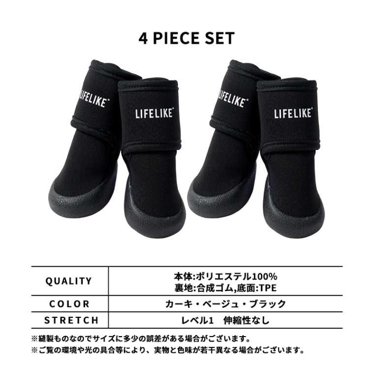 新色のベージュを新たに追加し、ロゴ部分も洗練されたデザインに改良。 大切なワンちゃんの肉球保護に必須の一足です。履き口が大きく開くので、着脱も簡単! ダブルストラップ仕様でしっかりと足首に固定させることができます。 走り回っても脱げにくく、元気なワンちゃんにも安心してお使いいただけます。