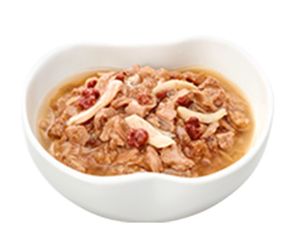 おいしさあふれるジューシーゼリータイプの総合栄養食。北里大学と共同研究した「a-iペプチド」と「DMHFを含むおいしい香り」が愛猫の心の健康維持をサポート。健康を維持し免疫力を保つビタミンEを配合。猫の必須アミノ酸であるタウリンを配合し、目と心臓の健康を維持。オリゴ糖が腸内の善玉菌を増やし、便臭に配慮。着色料・発色剤不使用。