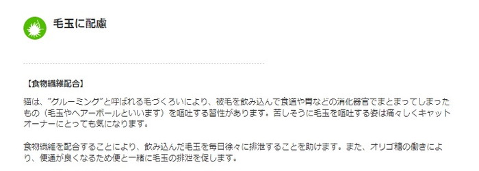 食物繊維(セルロース)が体内の毛玉の排出をサポート。