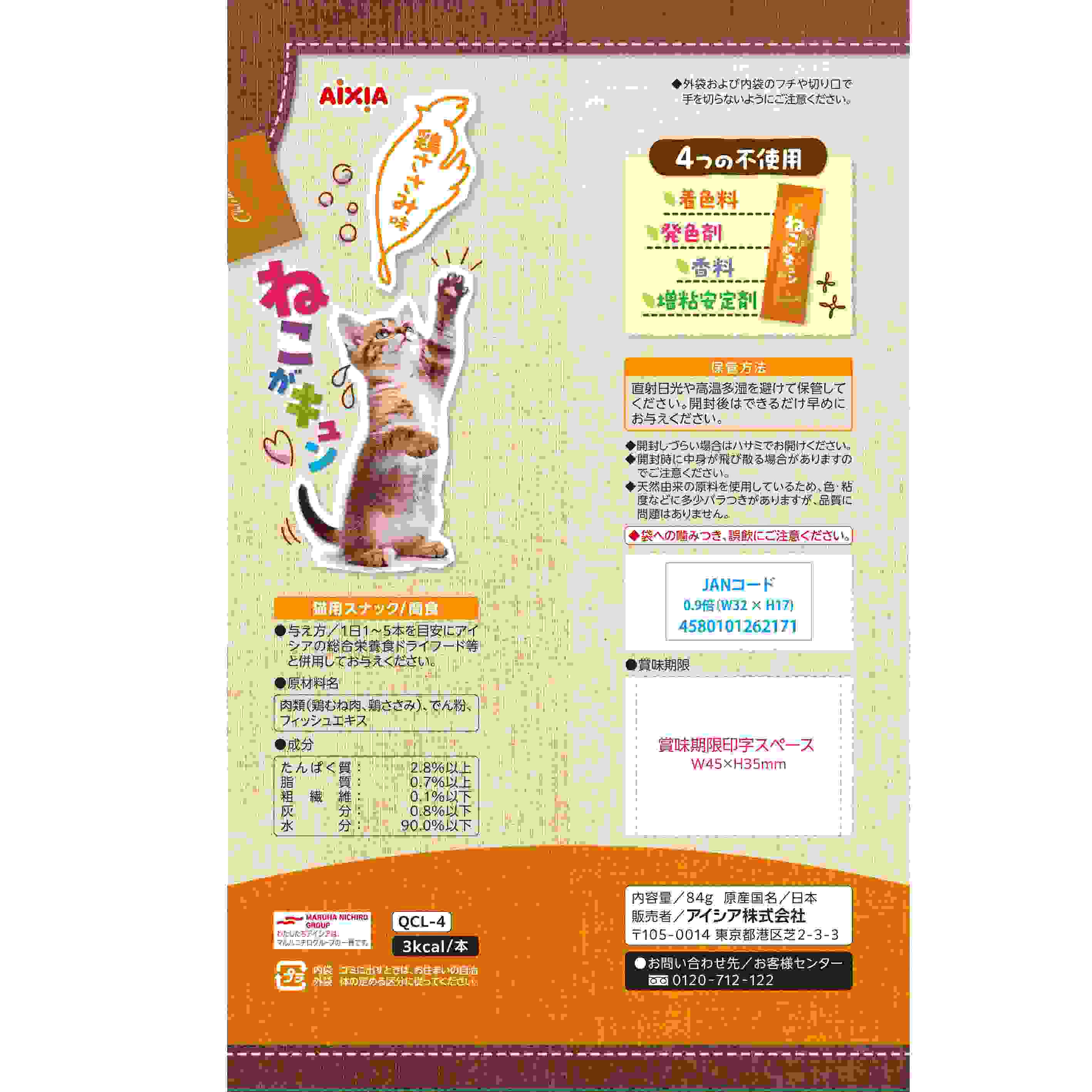 1日当たり1~5本を目安にし、アイシアの総合栄養食ドライフード等と併用してお与えください。