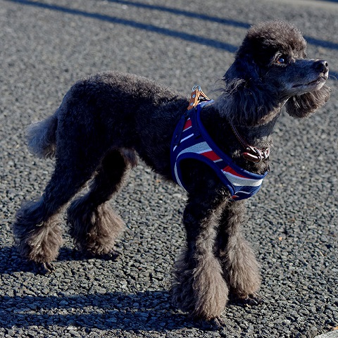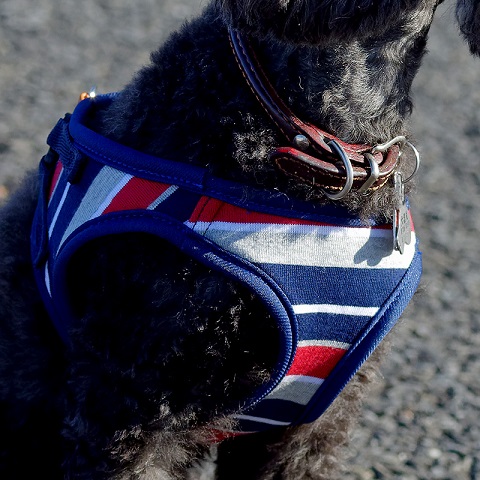 ふぞろいのボーダーがおしゃれ!元気なワンちゃんにぴったりのソフト胴輪です。