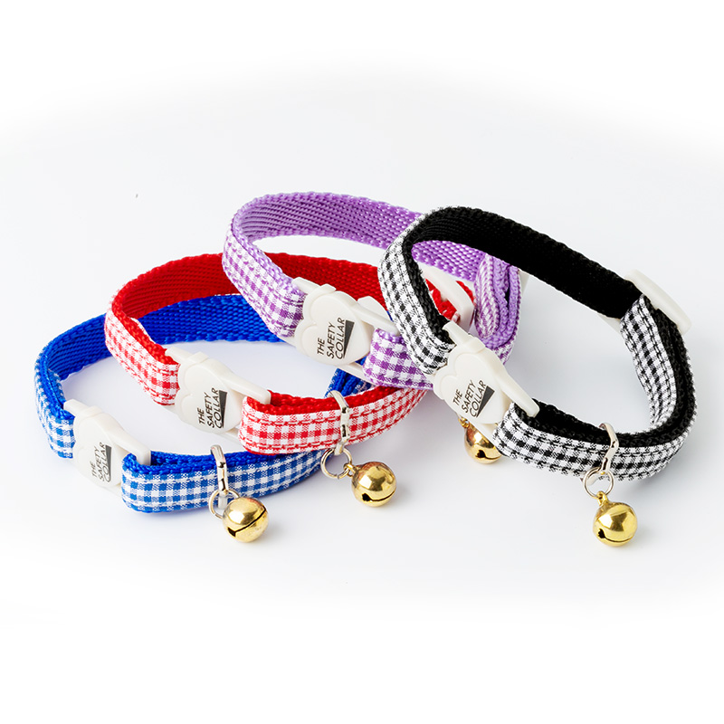 小さいギンガムチェックがかわいい、猫ちゃん用の首輪です。