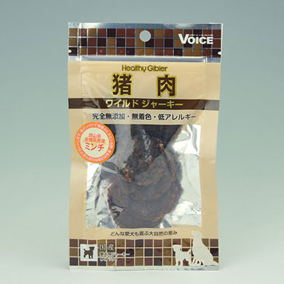 ジビエ(gibier)とはフランス語で猟師料理を指します。ヘルシージビエは野生動物の肉、天然素材をそのまま乾燥をした完全無添加、無着色、低アレルギーの国産ワイルドジャーキー(猪肉・鹿肉) です。