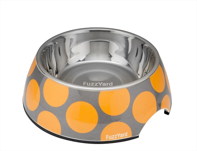 二層構造(内側ステンレス、外側メラミン製)のファッショナブルなフードボウル。