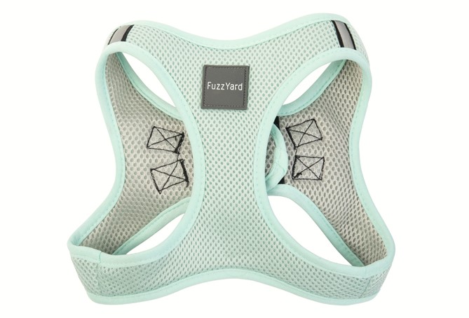 おしゃれでかわいい新しい仕様の犬用ステップインハーネスは、その名の通りステップイン(跨いで入って)して着用するタイプ。通気性の良いメッシュ素材でつけ心地快適。