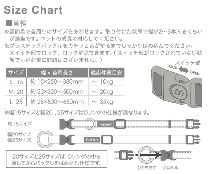 バックルにロック機能が付いている安心首輪で、20mmサイズの首輪はダブルセーフティ仕様となっております。