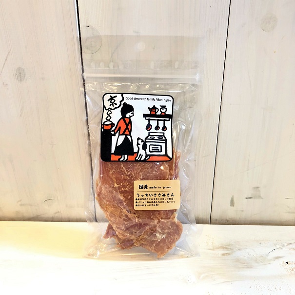鶏ささみを薄くのばし熱風乾燥。パキっと簡単に割れますので小型犬にもおすすめです。