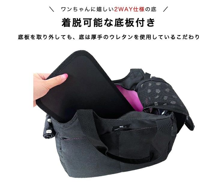 ボックスタイプとスリングタイプの良いところを組み合わせてデザイン。バッグを持ちやすさと、ペットの乗り心地の両方を考えて企画した2WAYキャリーバッグは、トートとショルダーでお楽しみ頂けます。