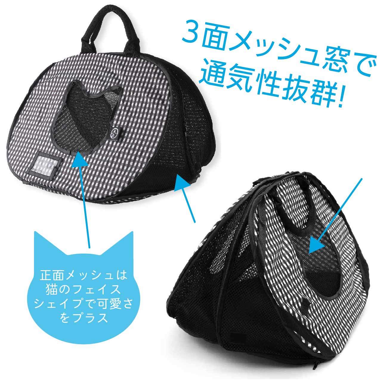 正面と背面のメッシュ窓は猫のフェイスシェイプでかわいさをプラス。