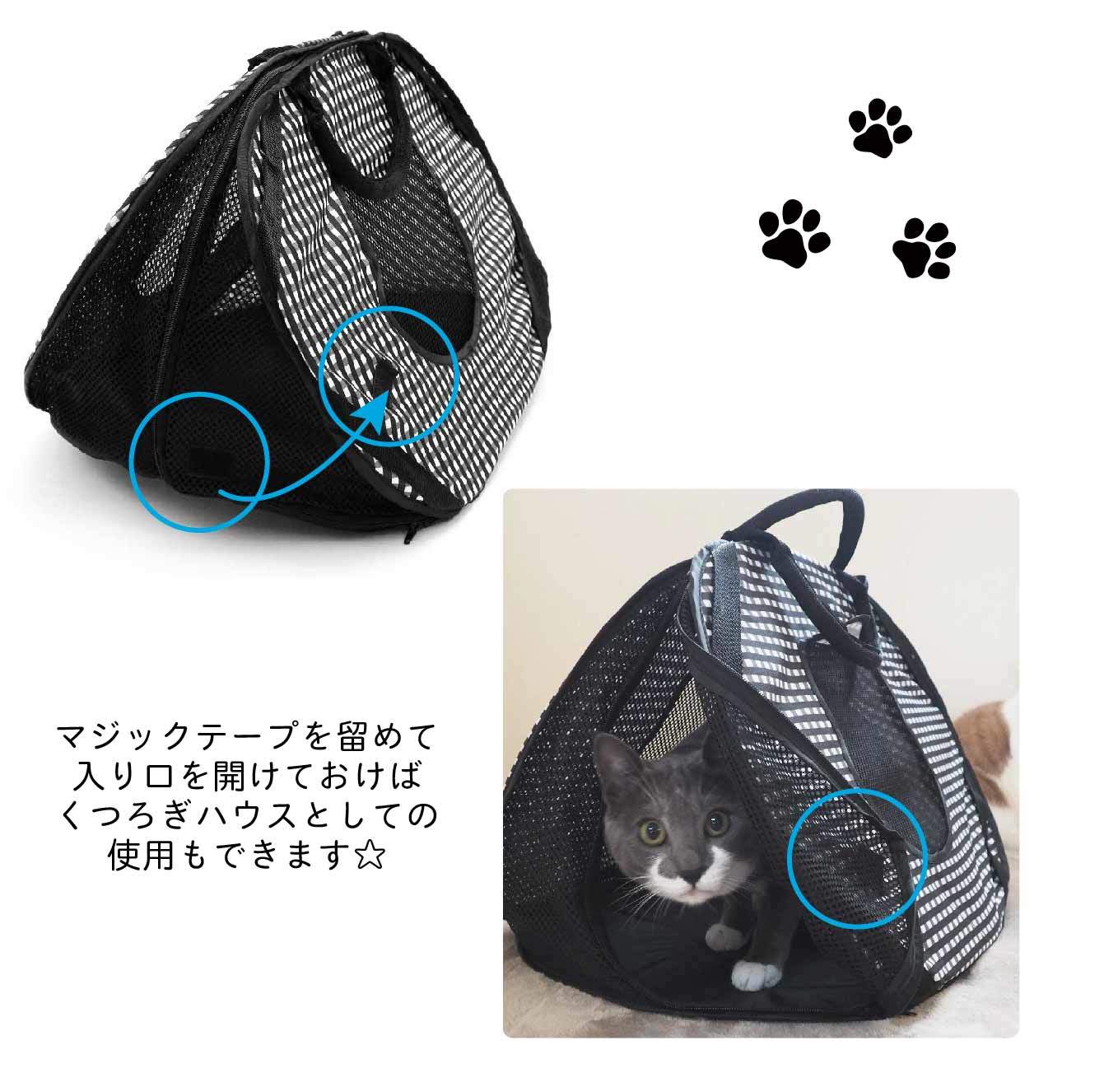 メッシュの入り口部分は、マジックテープで留めて固定しておくことができます。 外出時の使用だけでなく、普段から入り口を開けてお部屋に置いておいてあげると、猫ちゃんもキャリーに慣れてくれます。 おでかけ時だけでなく、ぜひ普段からキャリーに慣らしてあげて、怖い物ではないということを教えてあげましょう。