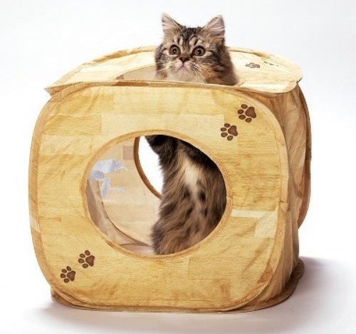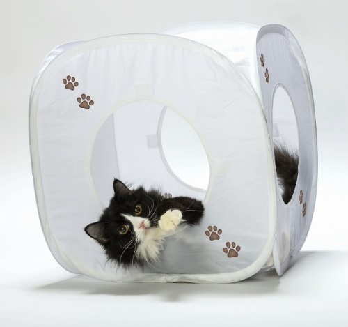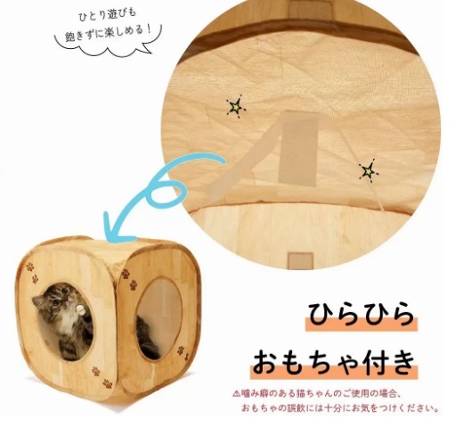 キューブの内側にはひらひらおもちゃ付き。猫がひとり遊びを楽しむこともできます。