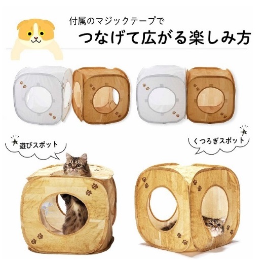 隠れ家ハウスとしておやすみスペースになったり、付属のマジックテープでキューブ同士をくっつけてお好みの形にしたり、楽しみ方が広がります。