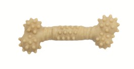<原材料> ????澱粉、米粉、グリセリン、活性グルテン粉末、大豆タンパク粉末、牛乳、植物油、乳化剤、二酸化チタン、ソルビン酸カリウム、リンゴ酸???<成分>?? ??粗たんぱく質12%以上、粗脂肪1%以上、粗繊維5%以下、粗灰分6%以下、水分16%以下? 代謝エネルギー ?243Kcal/100g???≪与え方≫ 18週齢以上の成犬に健康状態を考慮し、1日あたりの給与量を目安に1日1回?数回に分けて、そのままおやつとして与えてください。? 1日あたりの超小型犬(2?7kg)1本、小型犬(7?11kg)1??2本。???≪保存方法≫ ??開封前は、直射日光・高温多湿を避けてください。 ??開封後は25℃以下で保存し、劣化を防ぐためお早めにお召し上がりください。??<本体サイズ>? 約70mm / 約10g ???<原産国>? ?台湾